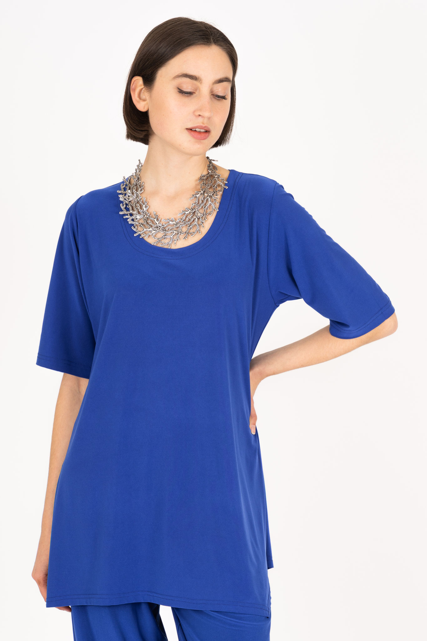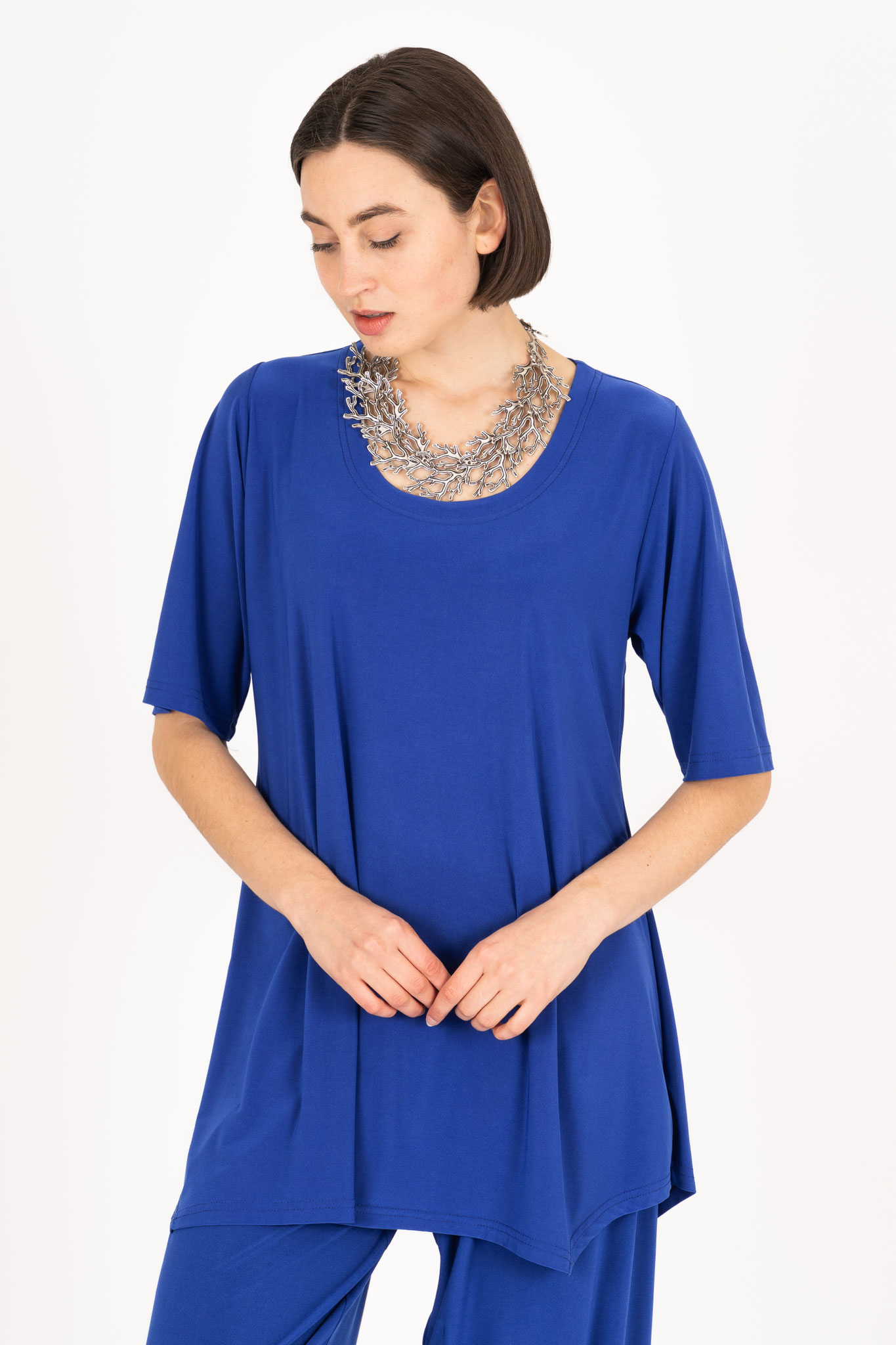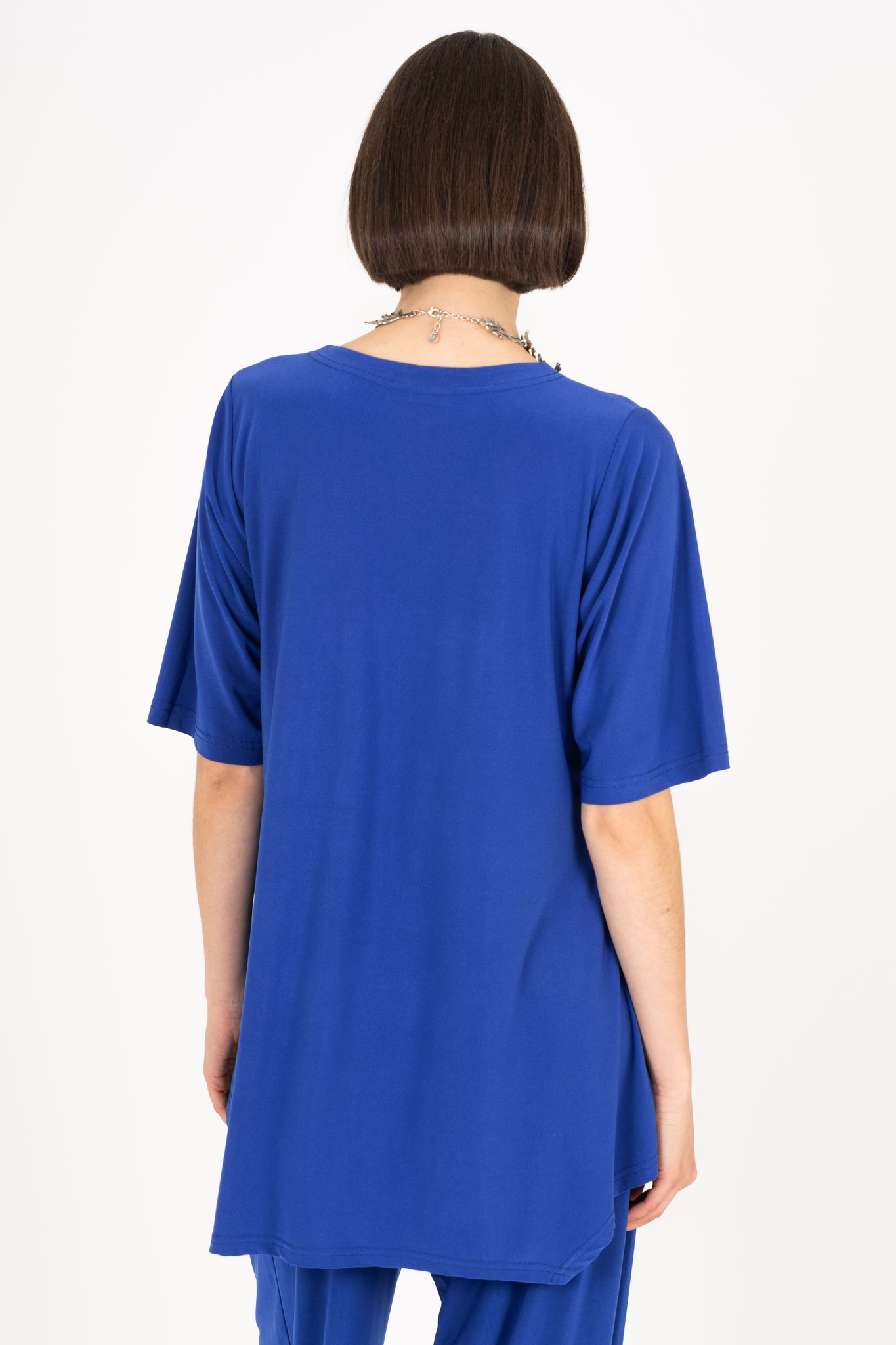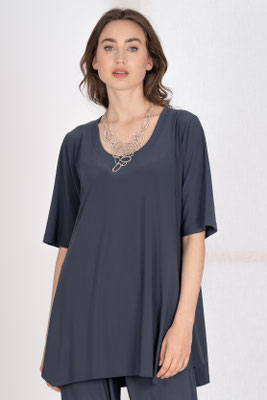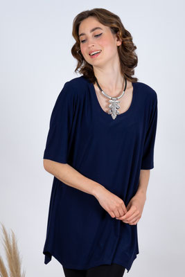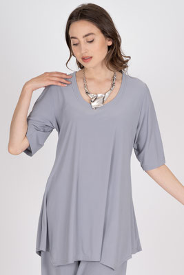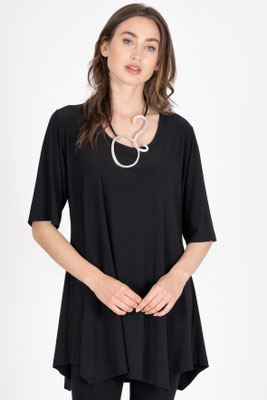 Die moderne Schnittform schmiegt sich jedem Körper an und der schräg zipfelige Saum zaubert eine herrliche Figur.