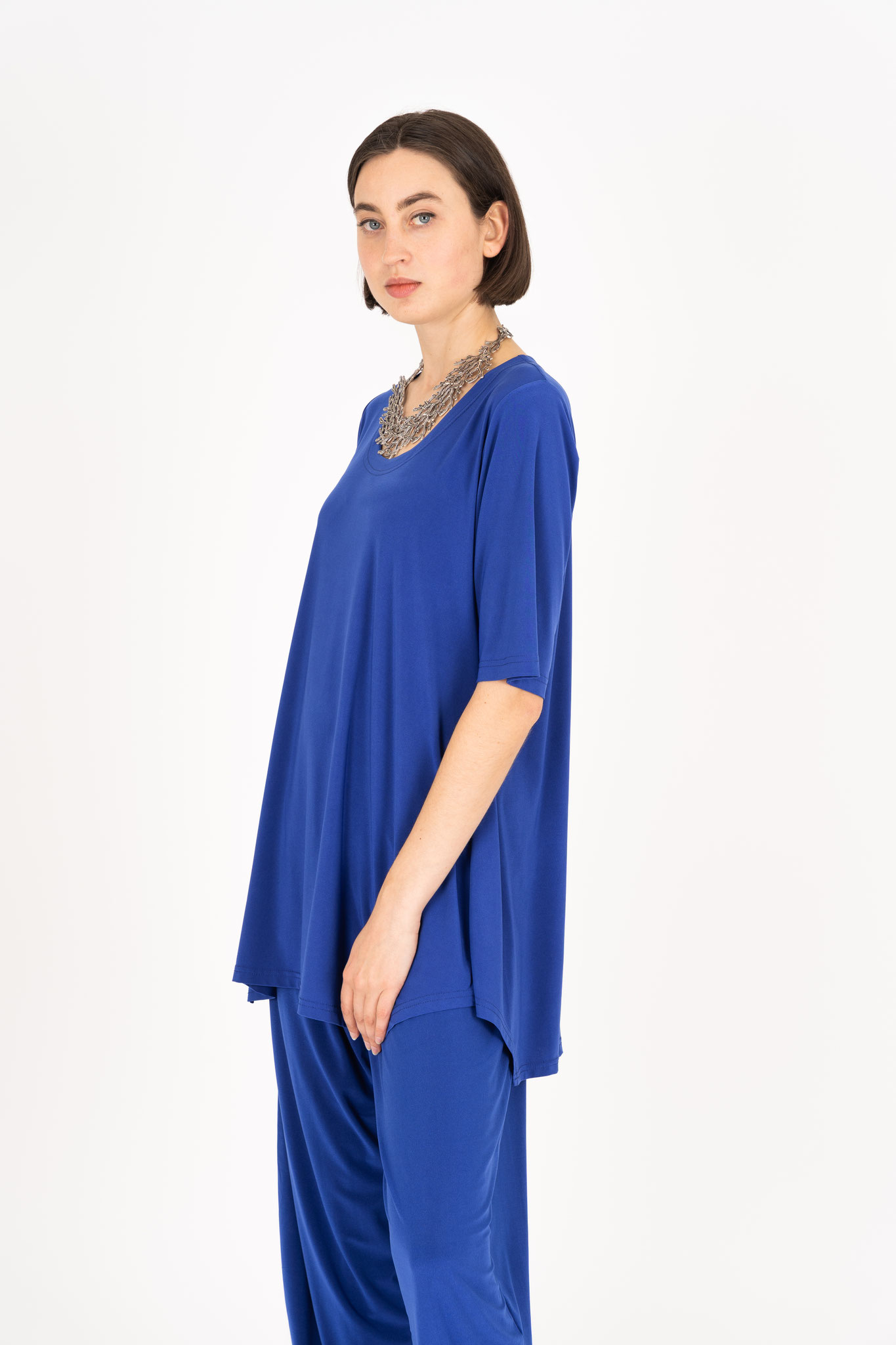 Der edle Viskose-Jersey Stoff unserer Ganzjahreskollektion fühlt sich fließend glatt und weich an. Er ist hochelastisch und besonders pflegeleicht.