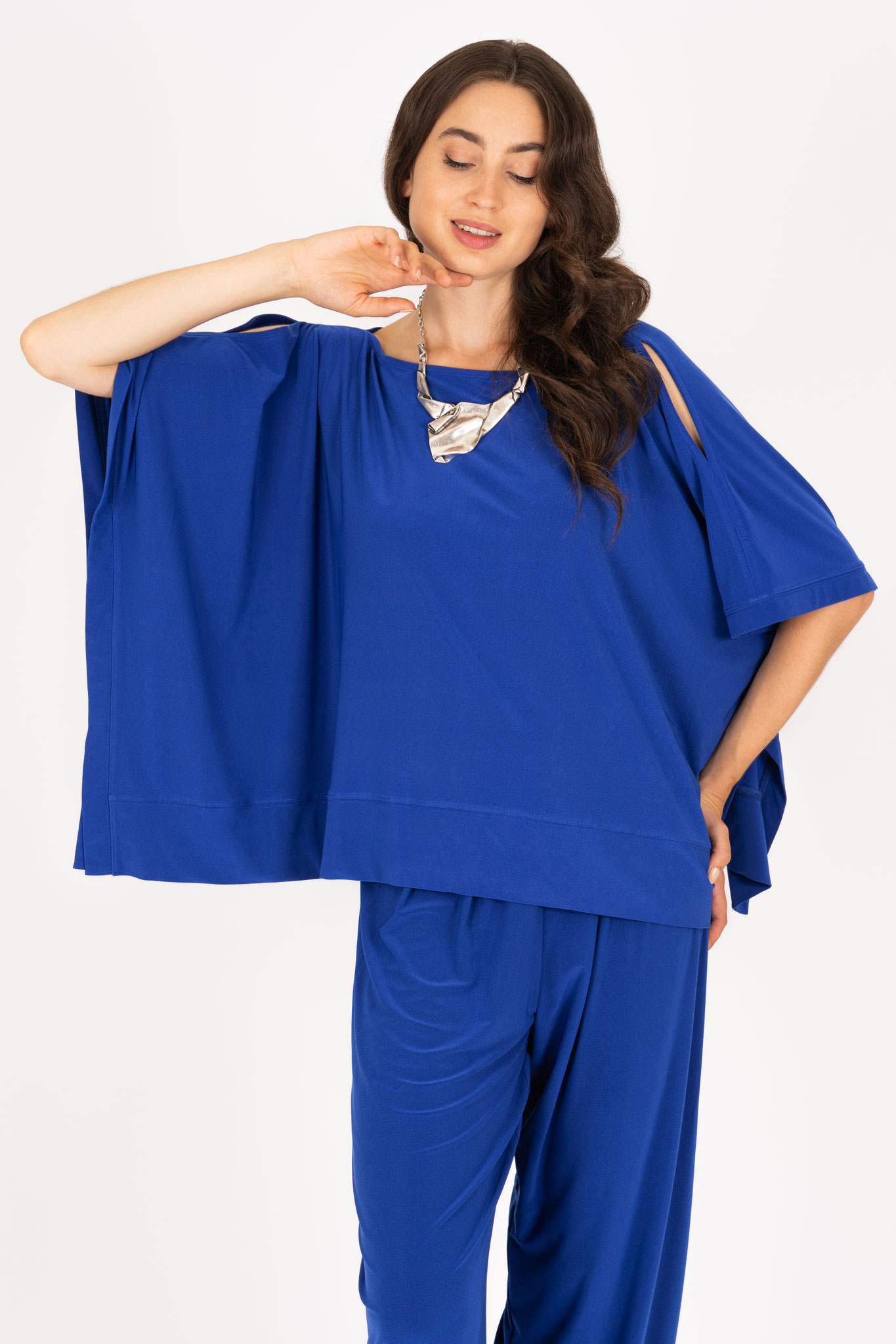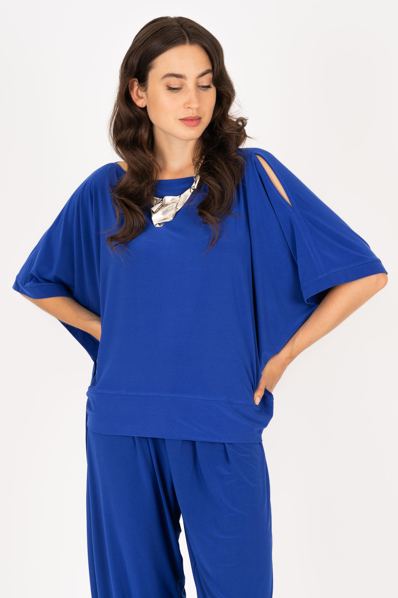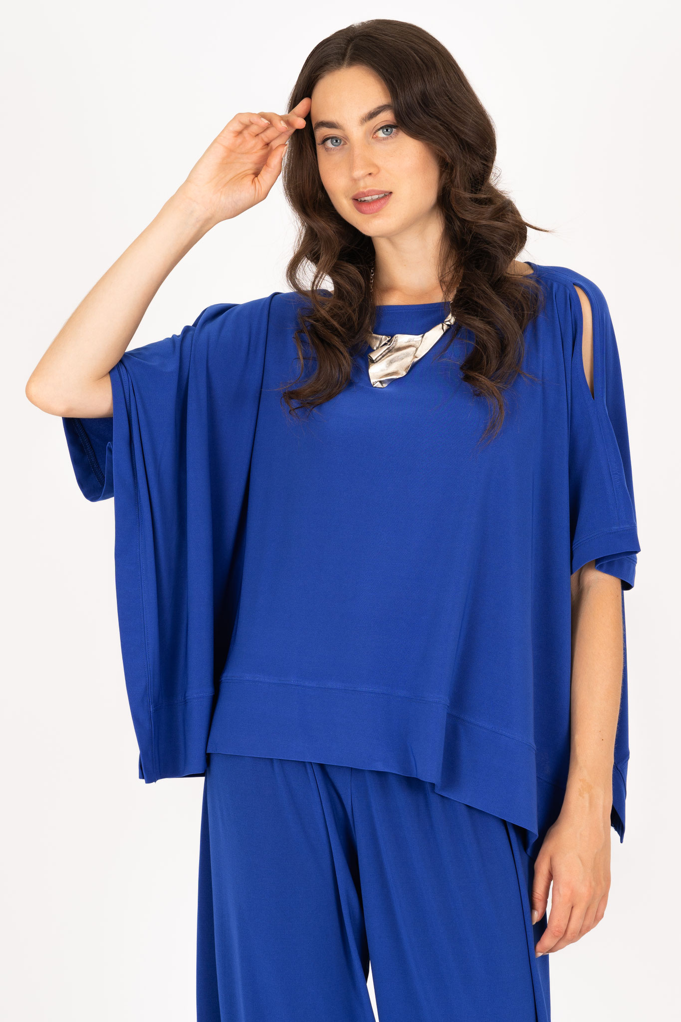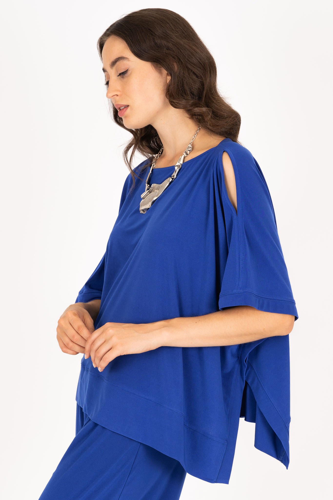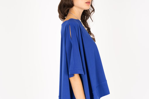 Großzügig geschnittenes, symmetrisches Shirt mit Öffnung an der Schulter in OneSize. Der kastenförmige Schnitt wird durch halblange Ärmel abgerundet. Perfekt kombinierbar mit einer weißen Bluse und unserer Ballonhose. Das richtige Accessoire rundet das Outfit ab.
