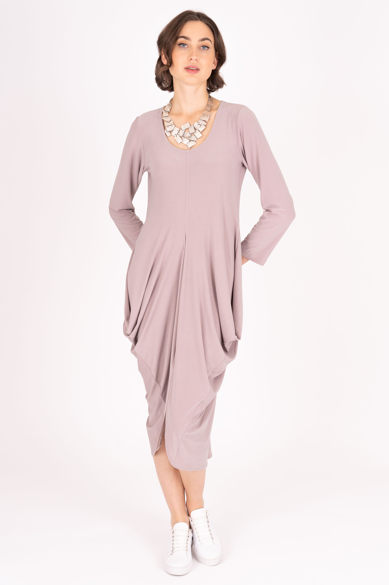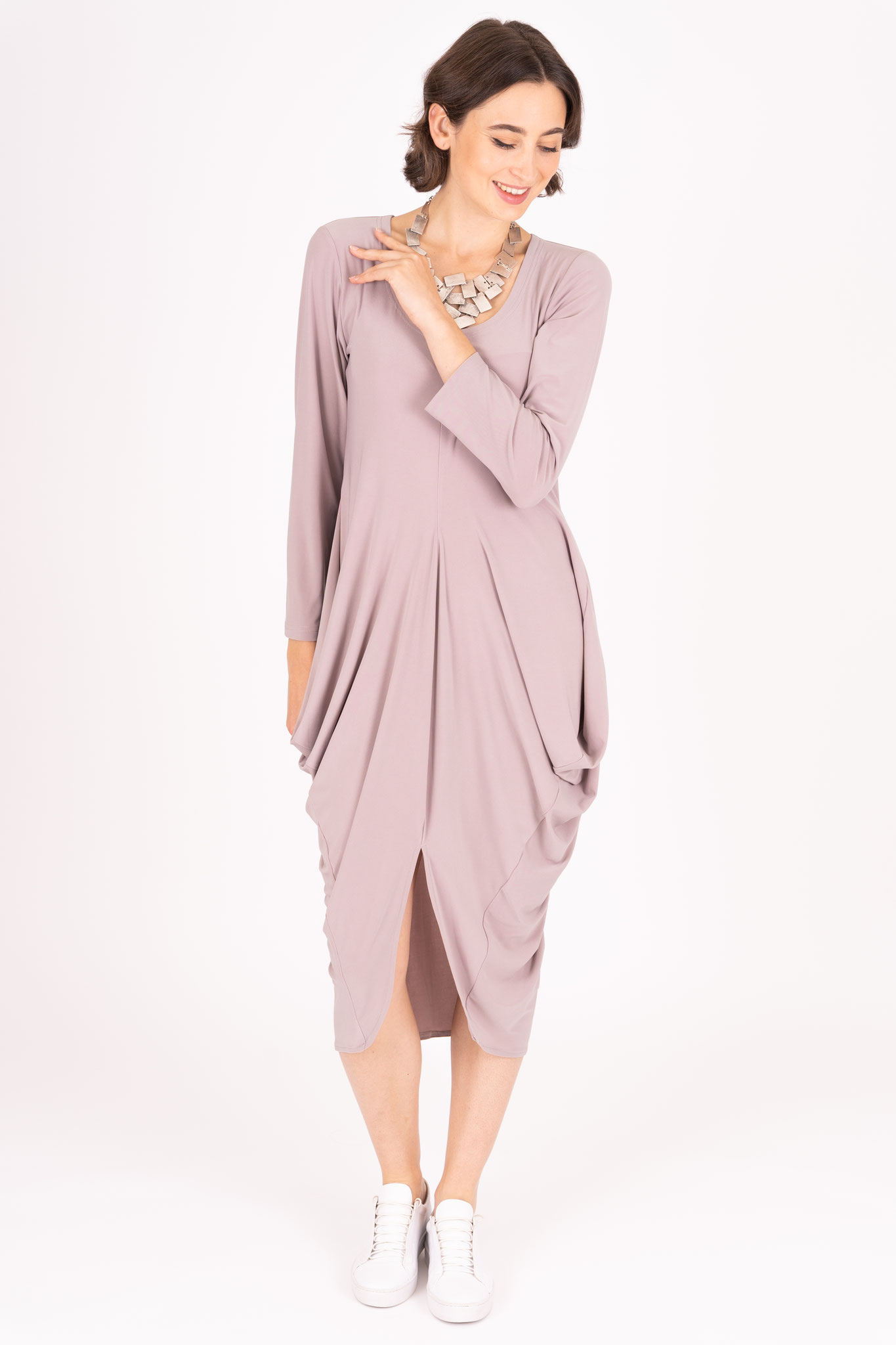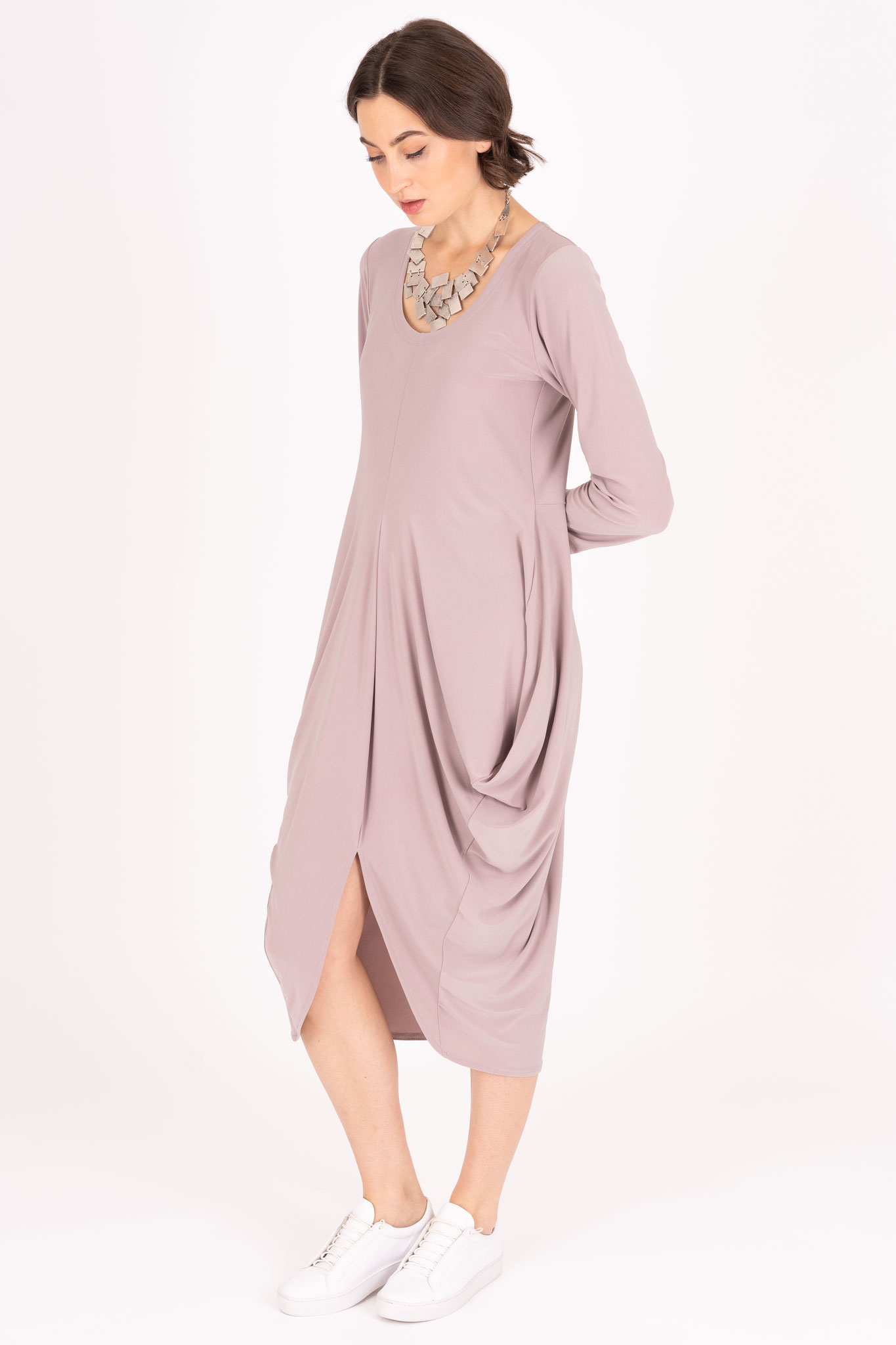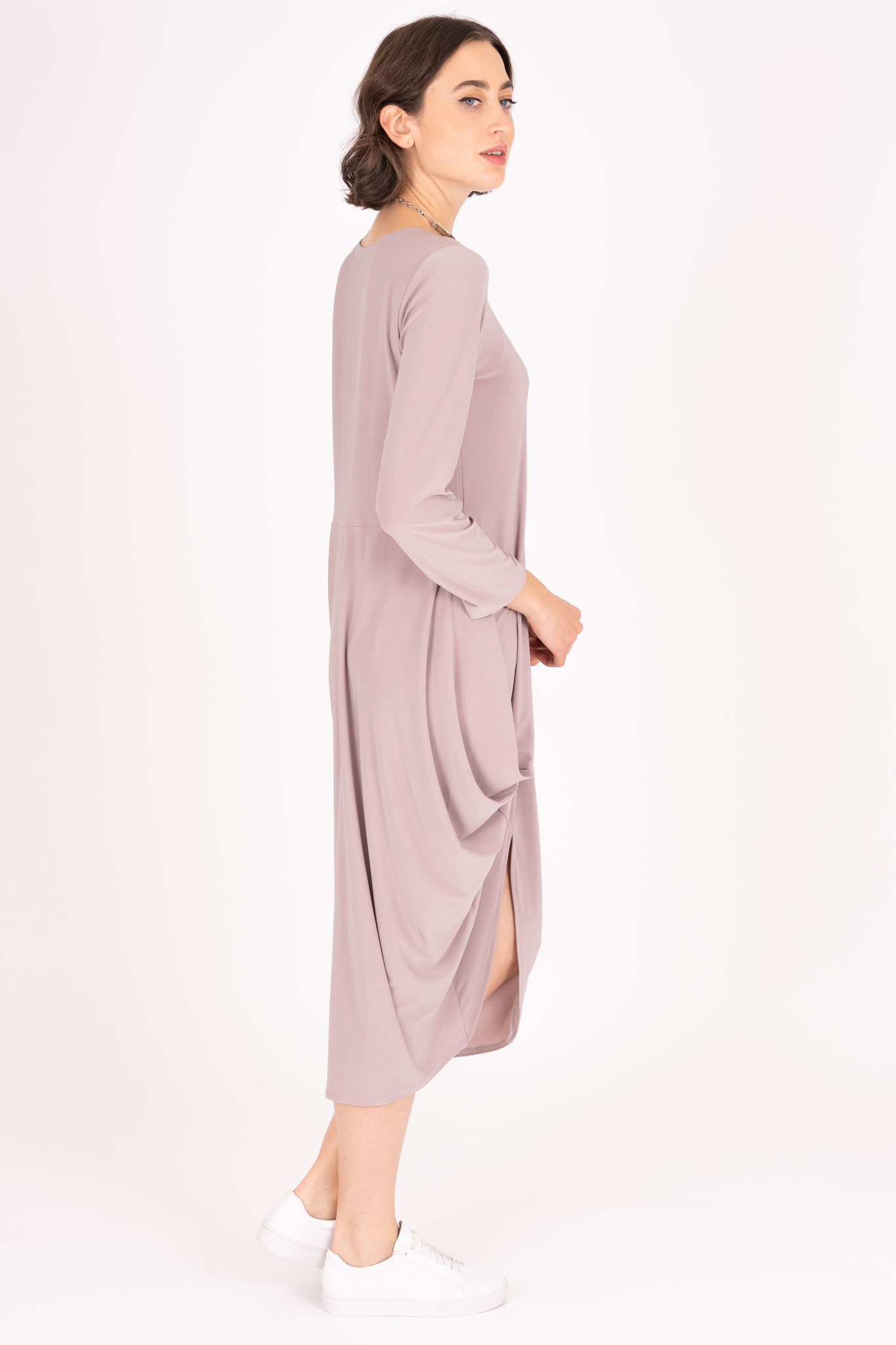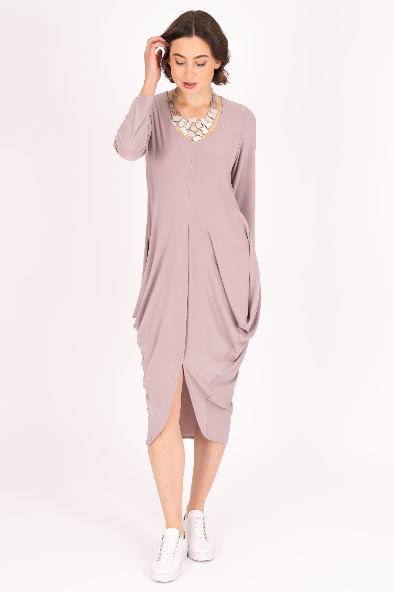 Der edle Viskose-Jersey Stoff unserer Ganzjahreskollektion fühlt sich fließend glatt und weich an. Er ist hochelastisch und besonders pflegeleicht.